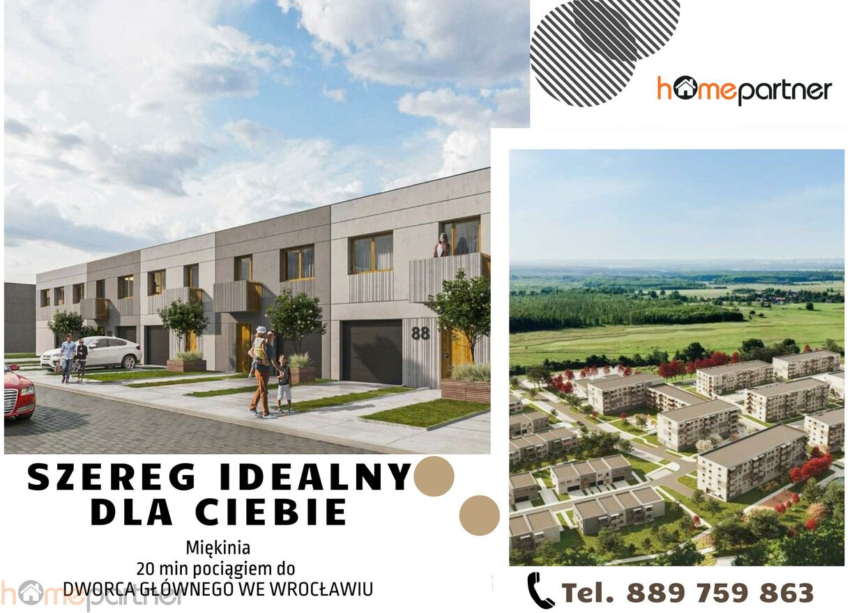 Na sprzedaż dom w zabudowie szeregowej z ogrodem i 2 balkonami o powierzchni 135,13 m2, znajdujące się na inwestycji deweloperskiej, zlokalizowanej w Miękini.